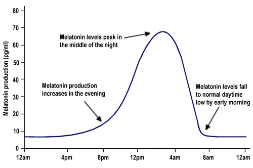 We use artificial light to light our homes, buildings, and streets after the sun sets. We also use it in electronic devices to clearly see the screens. Although it is incredibly convenient, it offsets our circadian rhythm to make us feel awake when we shouldn’t. Artificial light emits blue light, which suppresses melatonin. As discussed in the “What Controls Sleep?” section, melatonin is a hormone that promotes sleep; if melatonin is suppressed, sleep pressure is decreased. Before artificial light was invented, humans relied on the sun and fire for light. This meant that nights were much darker than they are today, and humans naturally fell asleep earlier. However, in modern society, artificial light is ubiquitous, and large cities are just as navigable at night as they are during the day. This chronically increases post-sunset exposure to blue light in the entire human species, causing us to fall asleep later and sleep less.