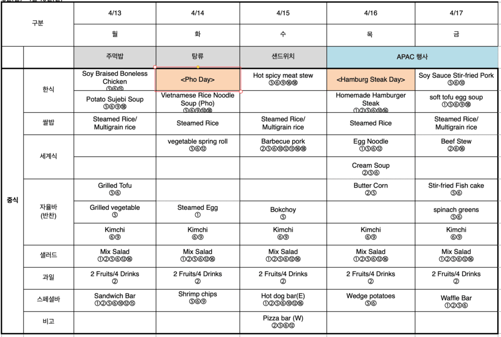 TCIS April lunch menu Published on April 6, 2026 by Sean K. Here are Taejon Christian International School’s April lunch menus from J&J Catering.